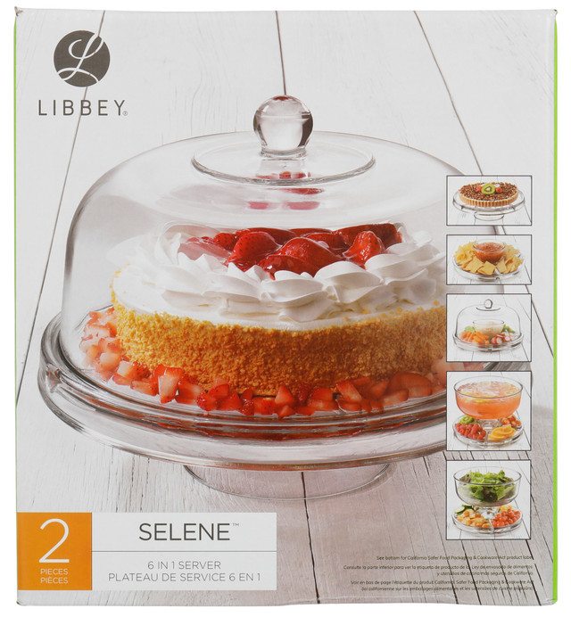 This versatile home entertaining glass serveware provides almost endless possibilities. The 2 components of the Selene 6-in-1 Server flip over and serve different purposes. The hollow base becomes a dip bowl and sectioned appetizer tray, and the dome turns into a roomy punch or salad bowl. Mix it up! Includes 1 multifunctional 11.6-inch diameter base (bowl on base is 14.5-ounce) and 1 multifunctional 10.6-inch diameter dome (144-ounce); 8.3 pounds total.