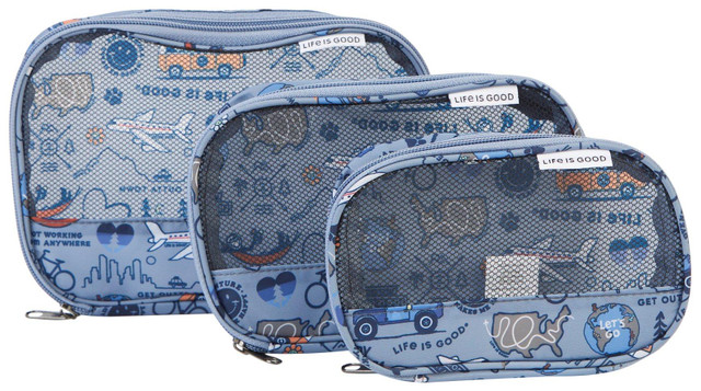 Our 3 Pack Travel Packing Cubes feature rip resistant material, mesh front for easy visibility, a design for smaller travel items and zip closure. Includes three sizes.