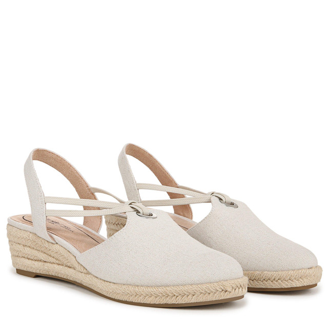 Go nautical in the Kennedy espadrille wedges. They feature a fabric upper design, almond toe, slip-on styling, metallic grommet detail with stretch straps,a jute-wrapped wedge heel, linings crafted from partially recycled materials, Trusted Soft System® comfort technology for unmatched cushion, support, and flexibility, shock absorption with pressure distribution and superior cushioning for an effortless feel, and traction soles for extra stability. Just Right Height 1.75 in. wedge heel.