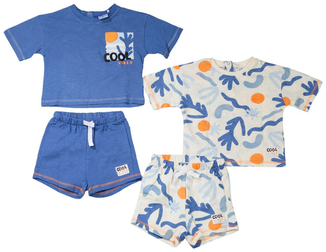 Keep him cool and coordinated with this Baby Boys 4 Piece Cool Cactus Shirts Shorts Set. Crafted from all cotton, the set includes two shirts and two shortsone in a playful cactus print and one in solid colordesigned for easy mix-and-match styling. Ideal for warm weather outings. Machine wash cold for easy care.