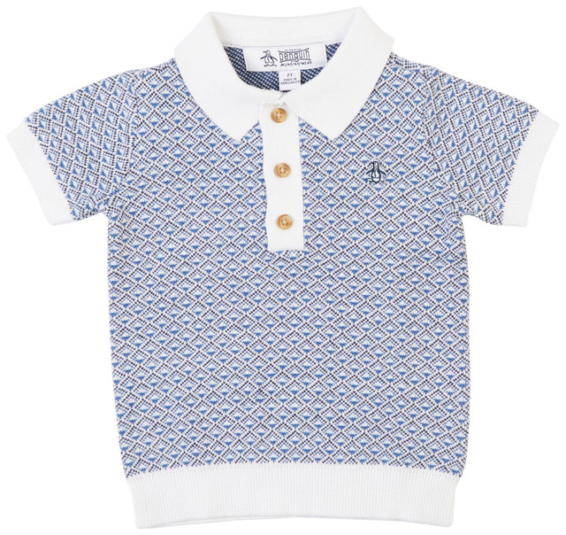 Classic meets cozy in this Original Penguin toddler boys polo sweater, blending preppy style with playful comfort. The short sleeves and contrast stripes add charm, while ribbed stitches create a soft textured feel he can enjoy all day long. Perfect for dressing up or down with ease.