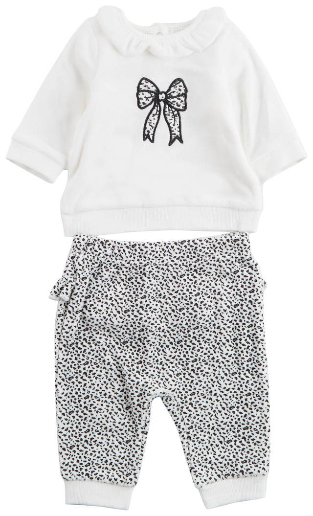 Add playful charm to your babys wardrobe with this 2-piece leopard bow pants set. The long sleeve top and matching pants are made from a soft blend of 76% cotton and 24% polyester, offering comfort and durability for everyday wear. Featuring a fun leopard print and bow detail, this set is perfect for outings or cozy days at home. Machine washable and safe for tumble drying.
