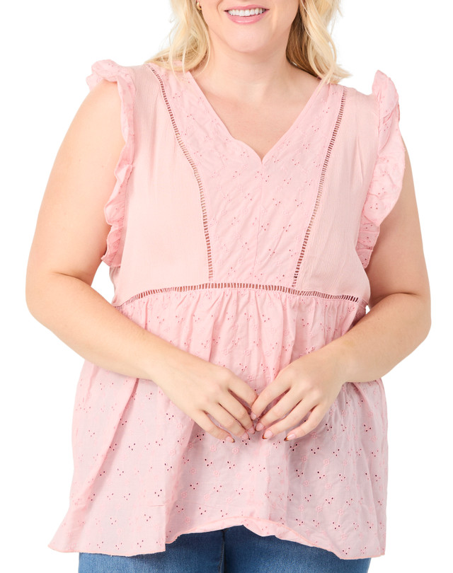 Add timeless charm to your look with the Flutter Sleeve Eyelet Top. Featuring delicate eyelet detailing and graceful flutter sleeves, this lightweight blouse blends feminine style with everyday comfort.