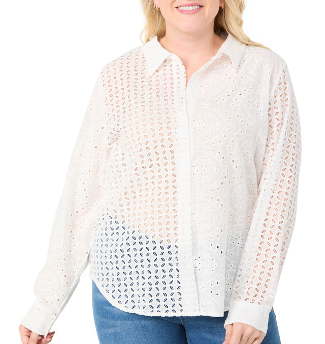 Liv Los Angeles Plus Long Sleeve Eyelet Button Down Top