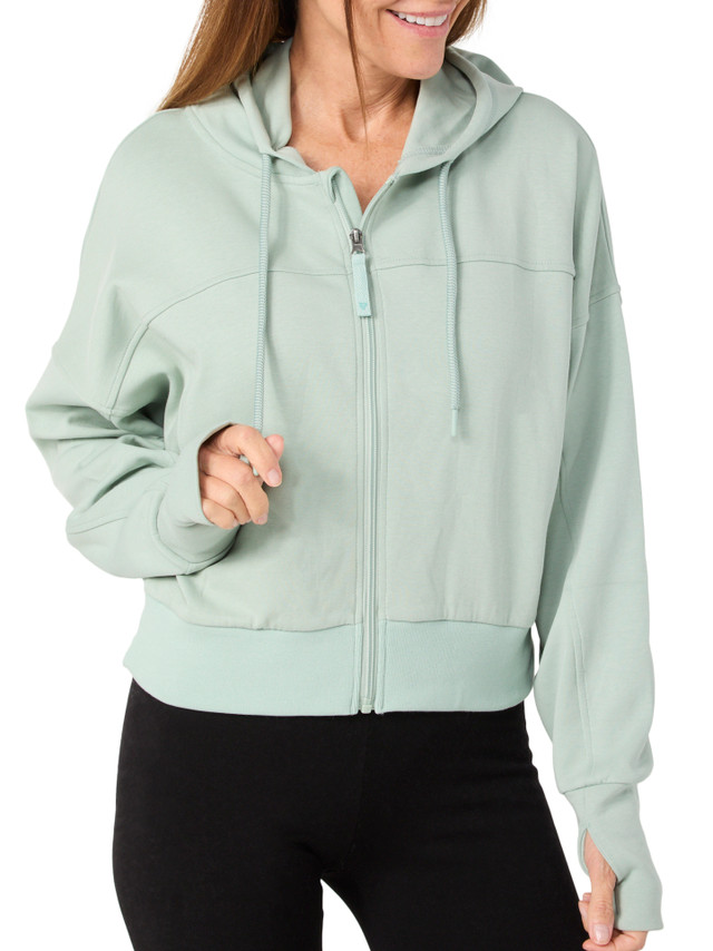 Soft comfort meets everyday style with the Womens Isla Full Zip Hoodie. Designed for effortless layering, this hoodie features a smooth full zip front, a relaxed fit, and a cozy feel ideal for workouts, travel, or casual wear. A versatile essential that blends function, comfort, and modern athletic style. Fabrication is 80% cotton, 15% polyester, 5% elastane.