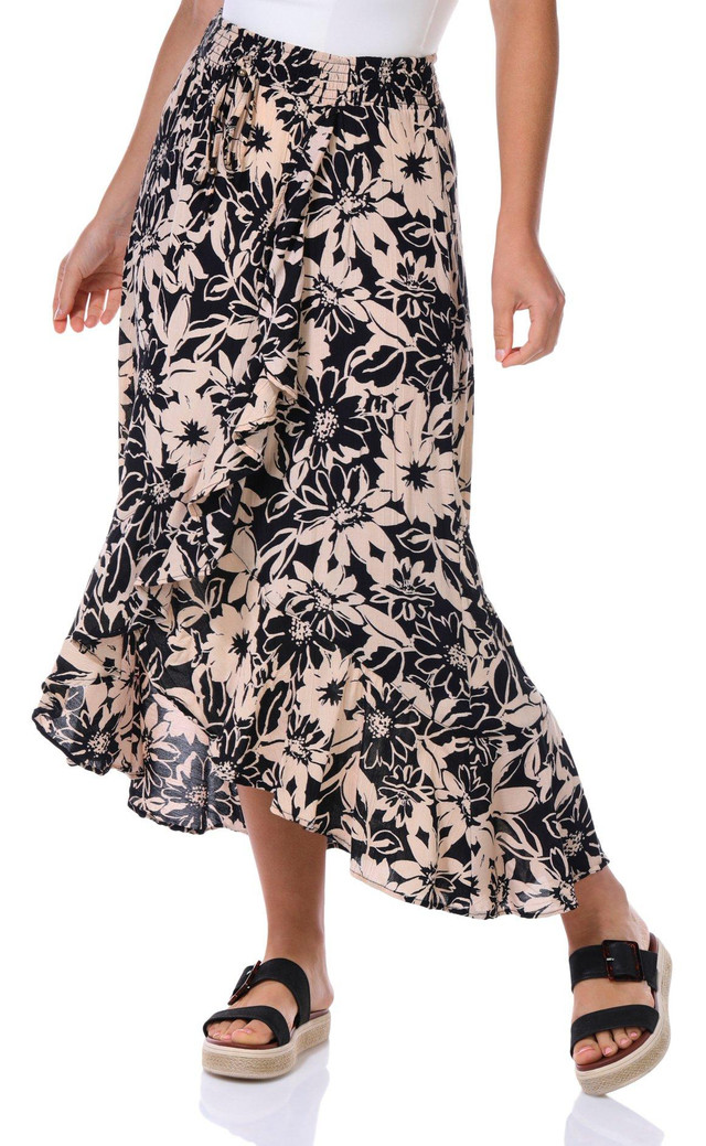 Step into effortless style with this Midi Skirt, designed with a playful print pattern and a flattering elastic waist for all day comfort. The front split adds a breezy touch, while the tassel detail brings a hint of boho charm.