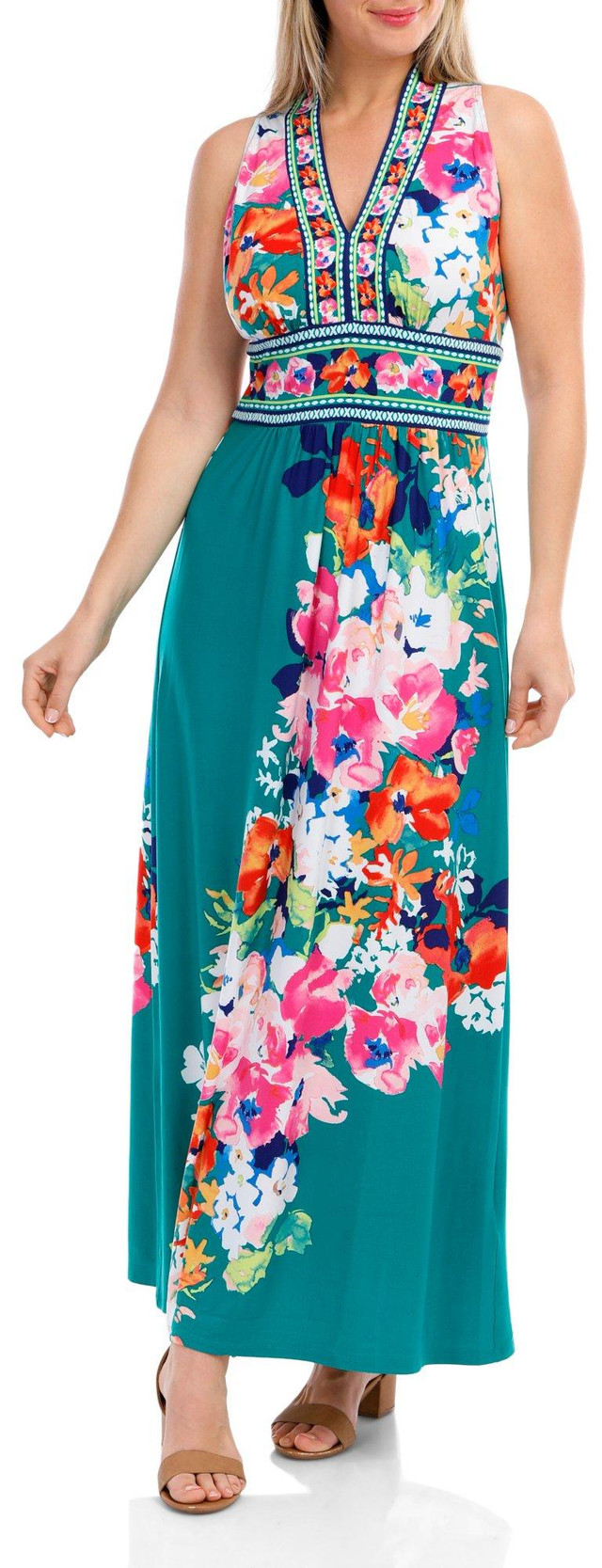 London TimesLondon Times Womens Sleeveless Floral Maxi Dress