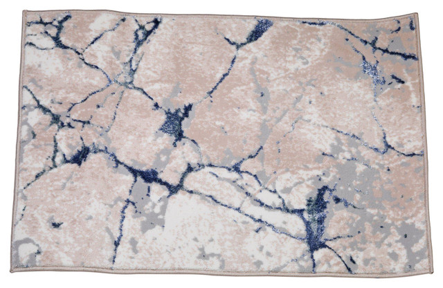 Add modern sophistication to any room with the 2x3 Antalya Blue Grey Marble Accent Rug. Featuring a blue and grey marble inspired design with a metallic iridescent finish that shifts with the light, it brings subtle depth and texture to compact spaces. Ideal for entryways or accent areas. Fabrication is 100% PES. Measures approximately 24 in x 36 in.
