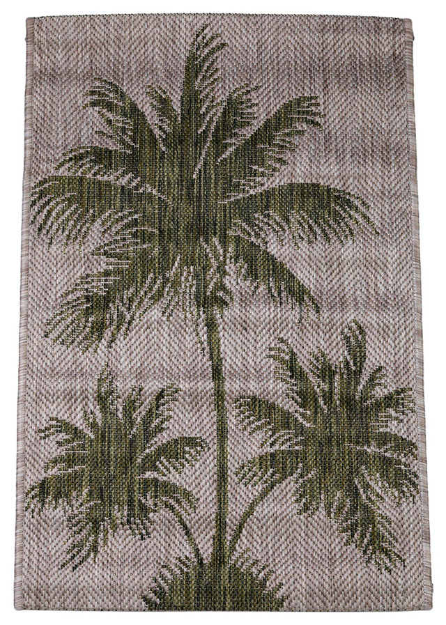 Bring a touch of the tropics to your home with the 36 inch Catalina Palm Tree Natural Accent Rug. Featuring a palm tree silhouette in soft tan and beige tones, the textured weave offers a natural, rope like look perfect for relaxed coastal spaces. Ideal for entryways or small accent areas. Fabrication is 100% polypropylene. Measures approximately 22 in x 36 in.