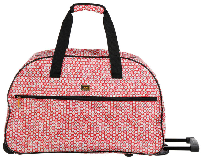 Travel lighter than ever with the Wheeled Weekender Duffel Bag! Featuring a stylish floral print, this duffel bag is designed to comfortably fit most overhead bins and carry your essentials with easy mobility through the airport. Includes a top zip compartment, front zip pocket, side zip pocket, double wheel bottom, sliding handle, double top handle design and measures 22 x 10 x 14.5 in.
