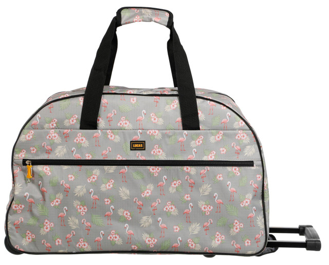 Travel smart and stylish with this 22 in Wheeled Weekender Duffel Bag. Lightweight and collapsible, it fits tight spaces with ease while helping you stay within airline weight limits. Glide effortlessly through airports with smooth-rolling wheels and a telescopic handle. Unique print design helps your bag stand out from other bags. Durable, elegant, and ready for any journeythis bag is your go-to travel companion. Measures approximately 22 in x 10 in x 14.5 in.