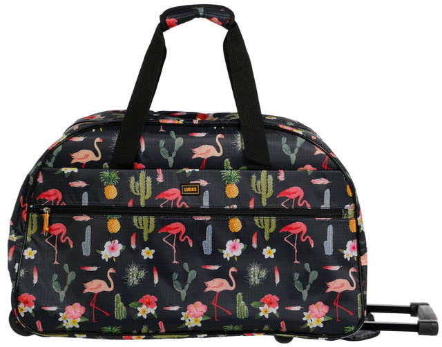 Travel smart and stylish with this 22 in Wheeled Weekender Duffel Bag. Lightweight and collapsible, it fits tight spaces with ease while helping you stay within airline weight limits. Glide effortlessly through airports with smooth-rolling wheels and a telescopic handle. Unique print design helps your bag stand out from other bags. Durable, elegant, and ready for any journeythis bag is your go-to travel companion. Measures approximately 22 in x 10 in x 14.5 in.