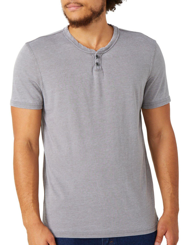 Mens Short Sleeve Henley Shirt offers a clean solid color with short sleeves and a classic henley neckline. Its soft feel makes it a comfortable choice for casual everyday wear. Fabrication 57% polyester, 43% cotton.