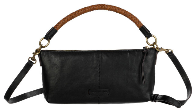 This satchel handbag is crafted from genuine leather for a sleek and durable design. An adjustable and removable strap offers versatile carrying options while a solid color provides timeless style. This bag is perfect for everyday use or dressier occasions. Measures approximately 11.5 in x 6 in x 2 in.