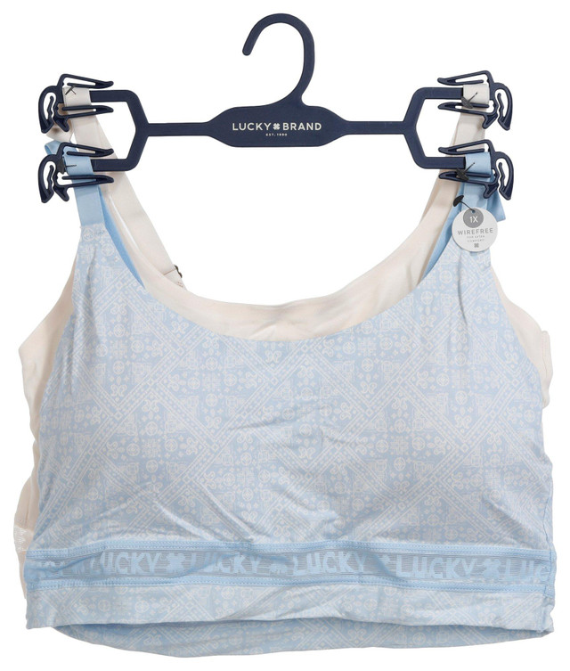 This 2 pack of lounge bras is all about effortless comfort and everyday ease. With adjustable straps and a wire free design, each bra offers gentle support and a custom fit that moves with you. Soft, breathable fabric makes them perfect for relaxing at home or layering under your favorite looks. Fabrication is 90% polyester, 10% spandex.