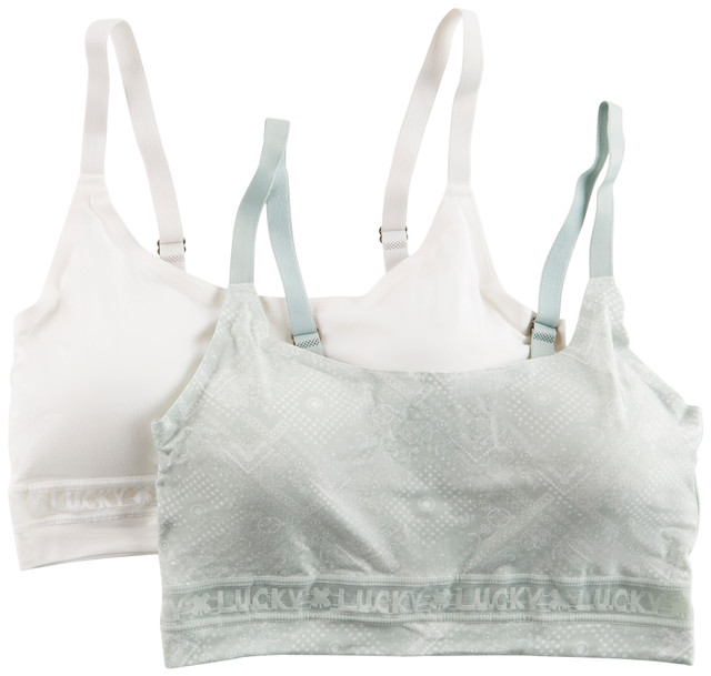 This 2 pack of lounge bras is all about effortless comfort and everyday ease. With adjustable straps and a wire free design, each bra offers gentle support and a custom fit that moves with you. Soft, breathable fabric makes them perfect for relaxing at home or layering under your favorite looks. Fabrication is 90% polyester, 10% spandex.