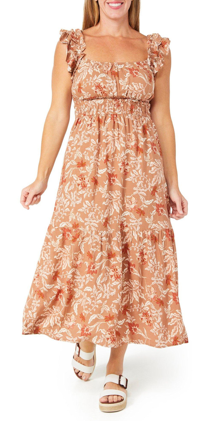 Step into effortless style with this womens sleeveless tier maxi dress featuring a square neckline and lightweight flowy fabric. Designed for warm days and relaxed evenings, the printed design adds a touch of charm while the tiered silhouette creates graceful movement. Ideal for casual outings, beach strolls or brunch dates, this dress blends comfort and elegance in one easy piece. Fabrication is 100% rayon.