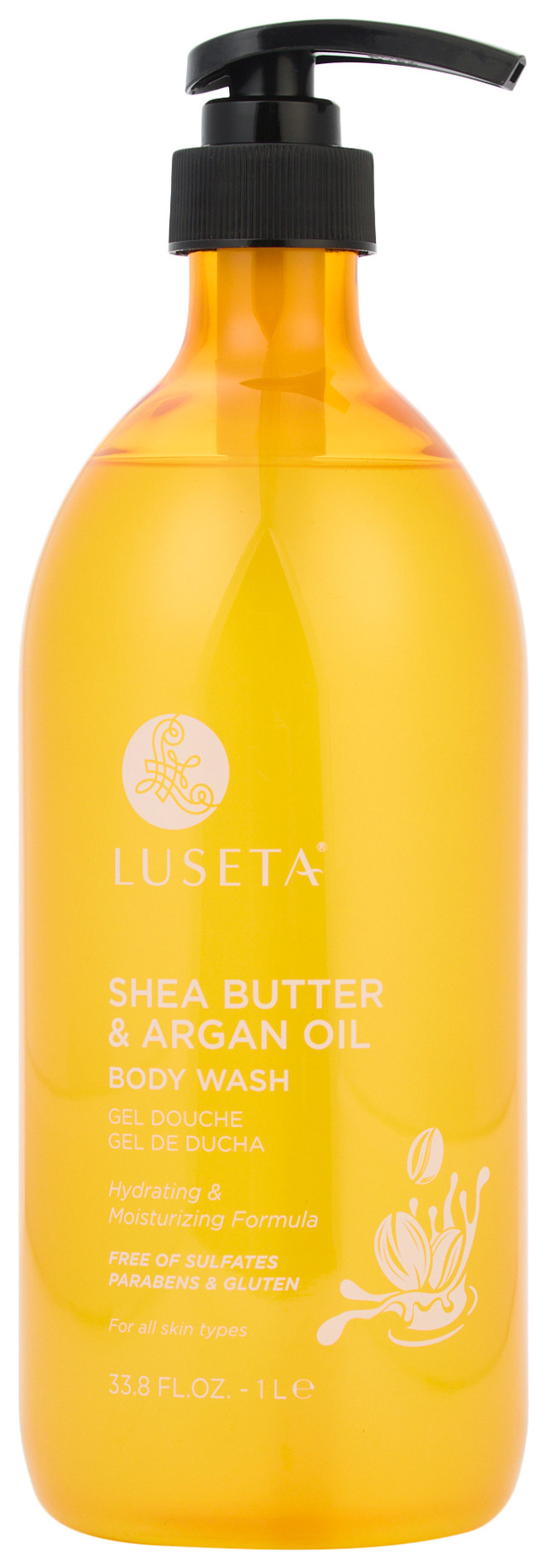 Featuring a rich blend of Shea Butter, Argan Oil, and Chamomilla, the Shea Butter & Argan Oil Body Wash helps cleanse, moisturize and soothe dry skin while imparting essential moisture to skin leaving it feeling squeaky clean and smooth. 33.8 FL OZ.