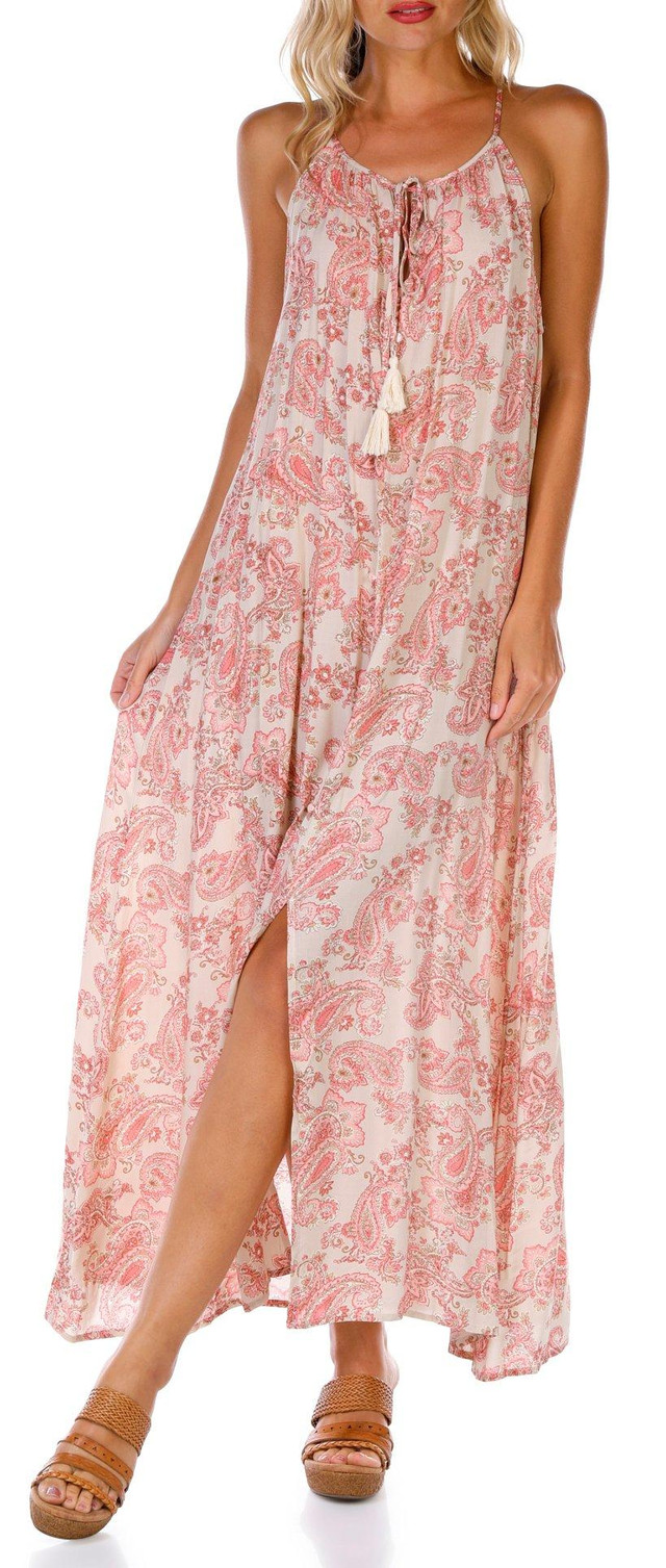 Flow into effortless style with this lightweight maxi dress from Lush. Featuring a vibrant paisley pattern, this breezy silhouette offers all-day comfort and standout appeal. Perfect for beach getaways, garden parties, or casual evenings, the relaxed fit and flowing design create a flattering look that moves with ease. Fabrication is 100% rayon