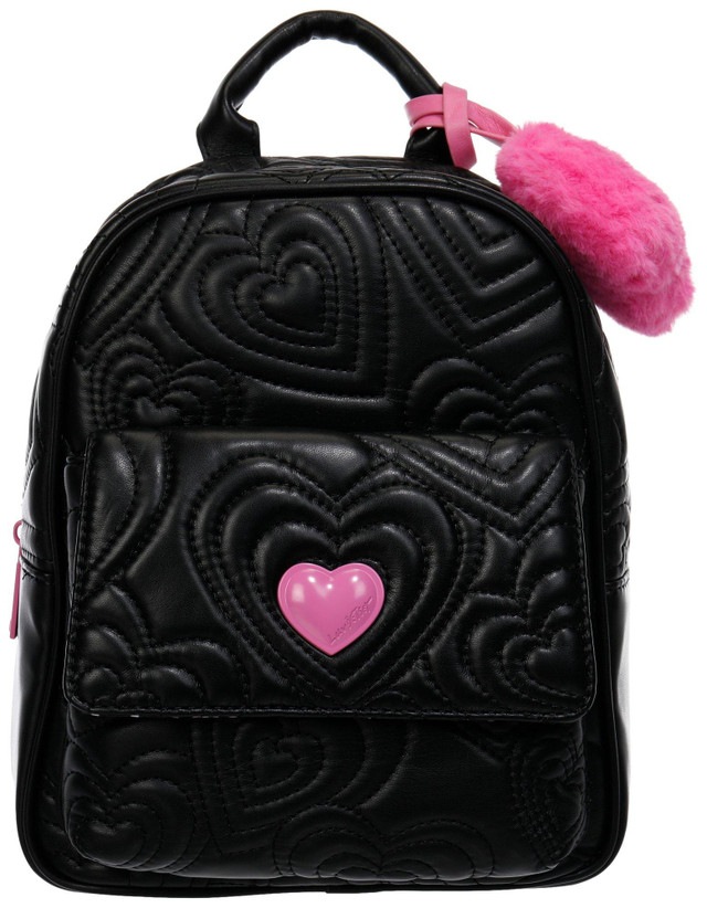 The perfect blend of fashion and functionality, this Embroidered Heart Backpack is a charming and stylish accessory for any occasion. This bag features a modern embroidered design, two adjustable backpack straps, a top handle, and a plush heart. The inner compartments reveals a lined interior with ample space and a zip pocket. Measures approximately 9 in x 5 in x 11 in.