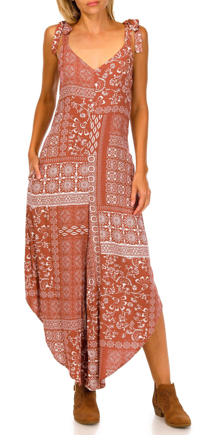 Make a statement in this womens sleeveless jumpsuit featuring a chic print and wide leg silhouette. The v-neckline adds a modern touch while the flowing design offers comfort and style. Perfect for daytime events, weekend getaways or casual evenings, this jumpsuit brings effortless elegance to any wardrobe.