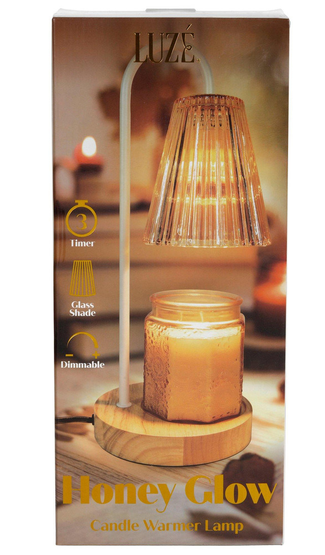 Elevate your space with the timeless elegance of the Honey Glow Candle Warmer Lamp. Designed to light up your space with elegance and comfort, this lamp includes a timer and dimmable features. Adds a touch of luxury and is a sophisticated centerpiece for any room. Suitable for candles up to 3.9 in diameter and 5.75 in height. Includes 1x candle warmer lamp, 1x 50W bulb, and 1x 110 Wall Plug