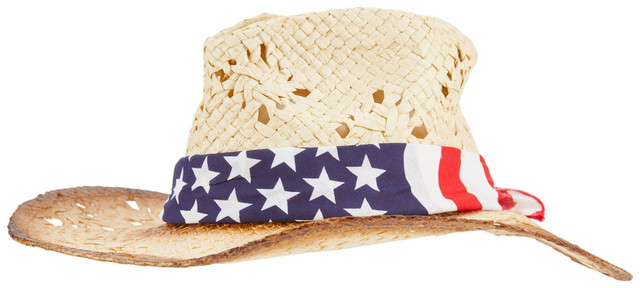 Woven from lightweight paper braid for a breathable, comfortable fit, this hat features bold Americana accents that bring a festive flair to any outfit. Whether you're heading to a summer rodeo, parade, or backyard BBQ, it's the perfect blend of rustic charm and patriotic pride.