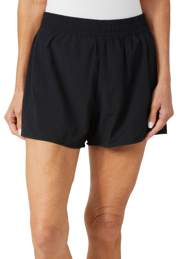 Stay active and stylish in the Women's Active Ember Woven Shorts, featuring a comfortable elastic waistband and a secure back zip pocket. Lightweight and versatile, they are perfect for workouts, errands, or casual days on the go. Fabrication is 89% polyester and 11% spandex.