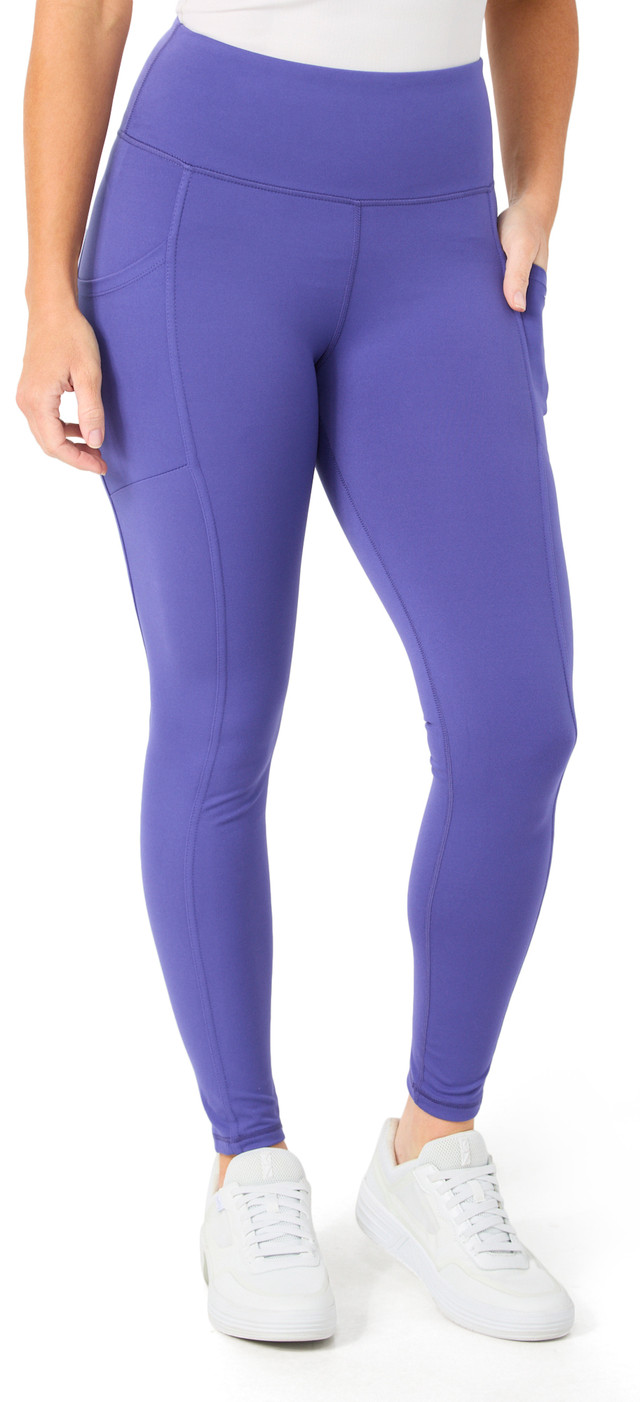 These womens active high waisted Cameron leggings feature a power mesh compression waistband, side pockets, and performance stretch for comfort and support. The solid color design makes them easy to pair with any workout top for an easy and functional active look.
