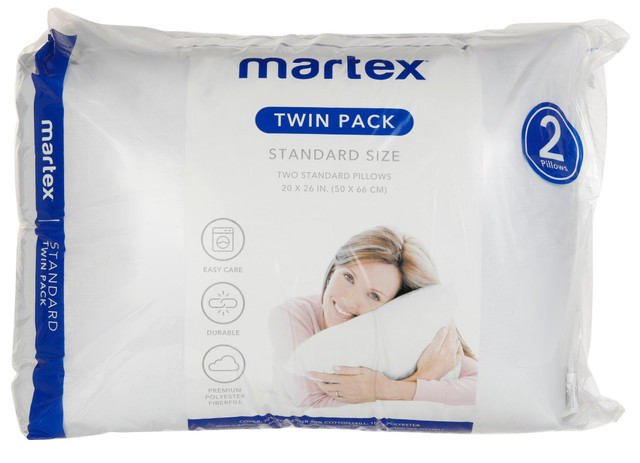 Upgrade your sleep with this 2-pack of Pillows, filled with premium fiberfill for lasting loft and plush support. Designed for durability and easy care, they bounce back night after night and are machine washable for effortless freshness. Perfect for everyday comfort with a touch of luxury. Each measures 20 in x 36 in.