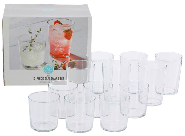 The 12-Piece Glassware Set includes 6 elegant 12.75 oz DOF (Double Old Fashioned) glasses and 6 17 oz highball glasses, perfect for any occasion. Crafted from high-quality glass, this set is designed for durability and clarity. Whether you're serving whiskey, cocktails, or refreshing beverages, it adds a touch of sophistication to your table. Ideal for entertaining or everyday use, this versatile set enhances your drinkware collection with style.