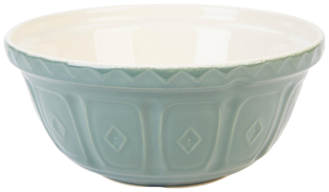 Add a fresh pop of color to your kitchen with the 11.75 in Color Mix Green Mixing Bowl. Featuring a vibrant green exterior with an embossed geometric pattern and a clean white interior, it combines style and function for everyday prep. Ideal for mixing batters, kneading dough or serving with ease. Dishwasher safe for easy care. Fabrication is 100% ceramic. Measures approximately 5.25 in x 11.75 in diameter.