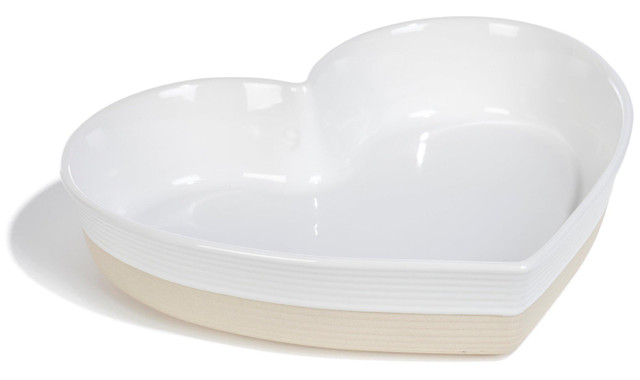 Create heartfelt meals with the 11 in Rustic Charm Heart Roasting Pie Dish. Designed in a classic heart shape with a horizontal rippled texture along the sides, it brings warmth and character to oven to table serving. Ideal for baking pies, casseroles or special occasion dishes. Dishwasher, oven, freezer and microwave safe. Fabrication is 100% ceramic. Measures approximately 11 in x 10 in x 2.5 in.