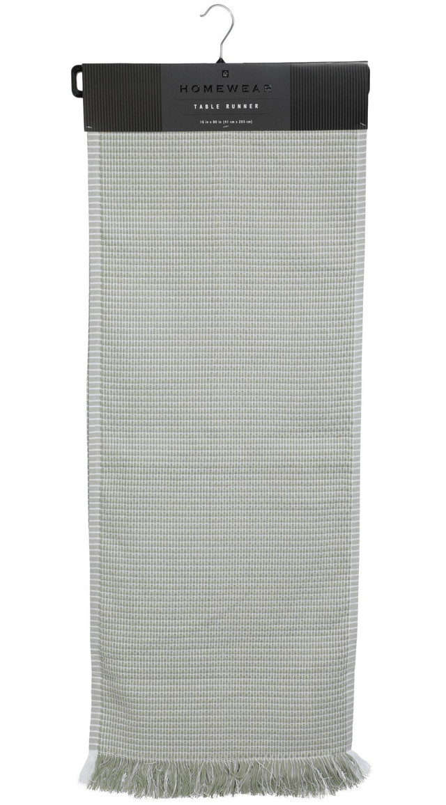 Add charm to your dining table with this 16x80 Arbor Stitch Table Runner. Featuring a subtle checkered pattern with the decorative arbor stitch pattern, its perfect for everyday meals or special occasions. Ideal for farmhouse, coastal, or boho decor styles, this durable woven runner adds texture and style to any setting. Measures approximately 16 in x 80 in.
