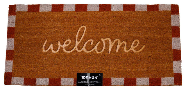 Welcome guests in style with the 20x40 Whit Welcome Door Mat. Made from 100% coir, this durable mat features checkered edges and a charming cursive Welcome script. Perfect for adding a touch of sophistication to your entryway while keeping dirt at bay.