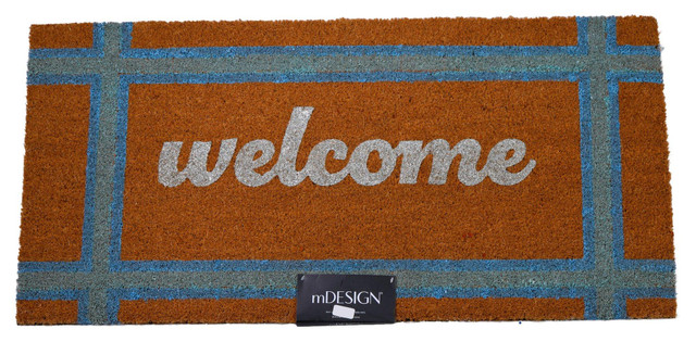 Welcome guests in style with the 20x40 Wren Welcome Glitter Door Mat. Made from 100% coir, this durable mat features elegant bright colored edges and a charming glitter Welcome script. Perfect for adding a touch of sophistication to your entryway while keeping dirt at bay.