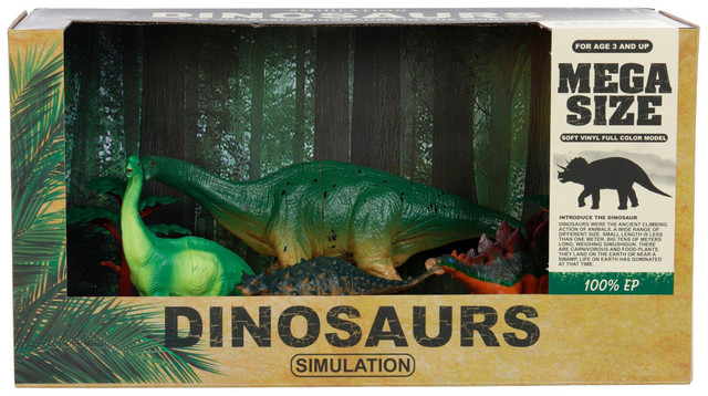 Bring storytelling to life with the Mega Size Dinosaurs Set featuring large, colorful figures designed for imaginative play and dynamic action scenes. A fun addition to any toy collection and a great gift for fans of all ages. Wipe clean with a mild detergent. Suitable for ages 3 years and up.