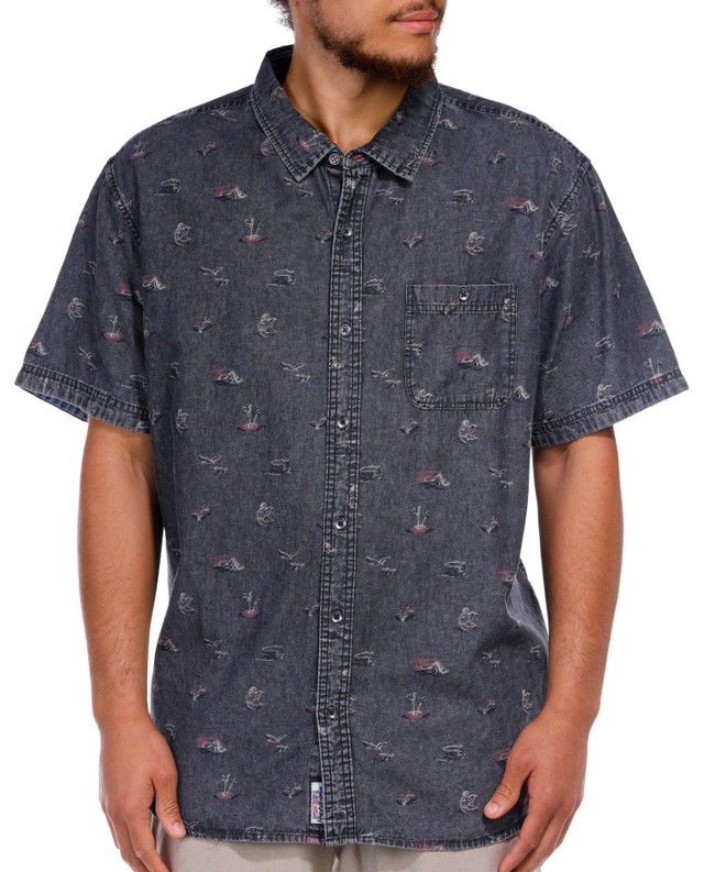 Embrace a timeless look with this short sleeve woven shirt, featuring a vintage wash and a stylish print. The buttoned front and chest pocket add practical elements to this classic piece, perfect for casual outings and relaxed gatherings. Crafted from high-quality materials, this shirt offers both comfort and a unique, retro-inspired aesthetic.