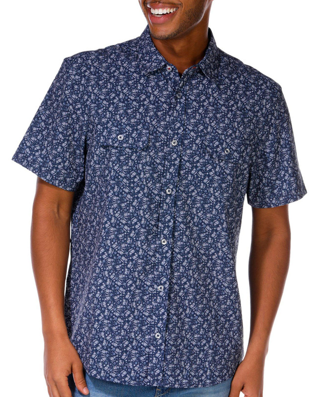 Channel timeless charm with the Sutherland Short Sleeve Shirt. Featuring a vintage-inspired print and classic buttoned front, this shirt blends retro flair with modern comfort. Its laid back look and effortless style make it a standout choice for sunny days, casual nights, and everything in between. Fabrication is 95% polyester, 5% spandex.