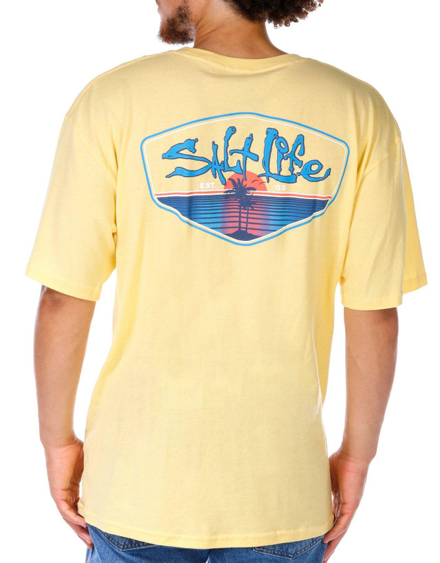 Escape to paradise with the Men's Private Island T-Shirt. Made from 100% preshrunk cotton, this shirt features brand script above the chest slip pocket, short sleeves, and a comfortable crew neckline. The back showcases a stunning island graphic design, making it perfect for both casual wear and tropical adventures.