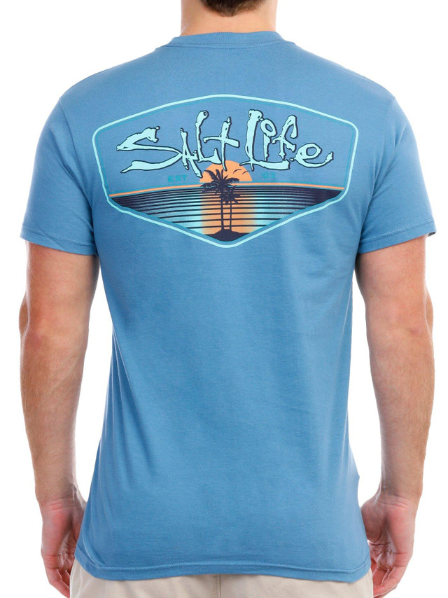 Escape to paradise with the Men's Private Island T-Shirt. Made from 100% preshrunk cotton, this shirt features brand script above the chest slip pocket, short sleeves, and a comfortable crew neckline. The back showcases a stunning island graphic design, making it perfect for both casual wear and tropical adventures.