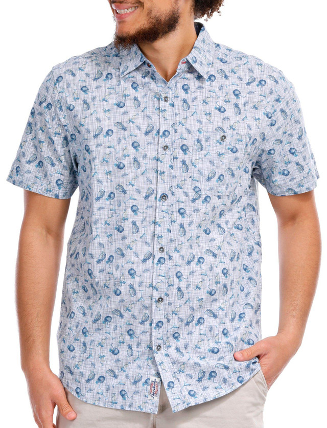 The Men's Short Sleeve Coconut Print Shirt is crafted from 100% cotton, ensuring a soft and breathable feel. Featuring a playful coconut print, this shirt is designed with a button-down front closure and a classic collared neckline. Perfect for casual outings and beach days, this stylish piece adds a touch of fun and tropical flair to any wardrobe.