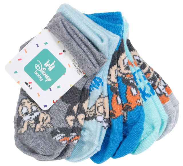 This 5-pack of baby boy Mickey Mouse socks features colorful character designs perfect for tiny feet. Made from soft, stretchy fabric, they offer a snug and cozy fit for infant sizes, ideal for shoe sizes 48.5. Comfortable and easy to mix and match, these socks are great for everyday wear, keeping little toes warm and stylish with a touch of Disney magic.