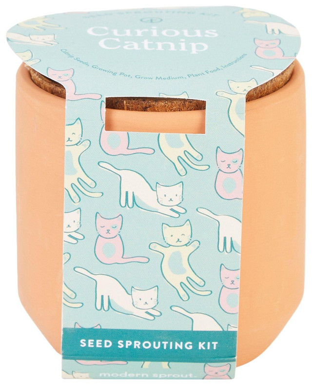 Treat your feline friend to homegrown happiness with this Modern Sprout catnip grow kit, featuring a charming terracotta planter and everything needed to sprout fresh catnip in days. The glazed interior and coconut husk liner support healthy growth and easy care. Perfect for windowsills or countertops, it's a fun, pet-friendly addition cats will love to nibble and play with. Measures approximately 3.5 in x 3 in round.