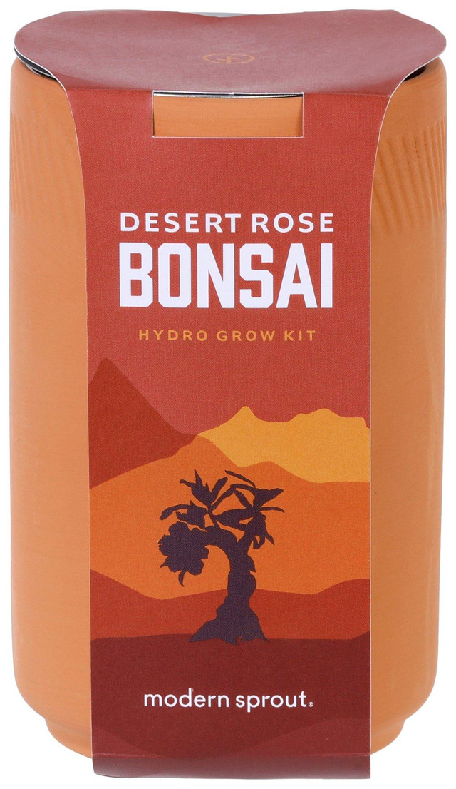 Cultivate calm with the Desert Rose Bonsai Hydro Grow Kit from Modern Sprout. Housed in a sleek terracotta vessel, this self-watering kit includes everything needed to grow a resilient desert rose bonsai from seed. A thoughtful gift or desk accent, it brings modern style and low-maintenance greenery to any indoor space. Measures approximately 5.5 in x 3.5 in round.