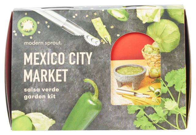 Create fresh flavor from the ground up with the Salsa Verde Garden Grow Kit. Includes seeds for jalapeño, tomatillo, and cilantro, along with a pepper de-seeder and wood garden markers. A culinary gardening set designed for homegrown salsas and kitchen enjoyment. Store in a cool dry place.