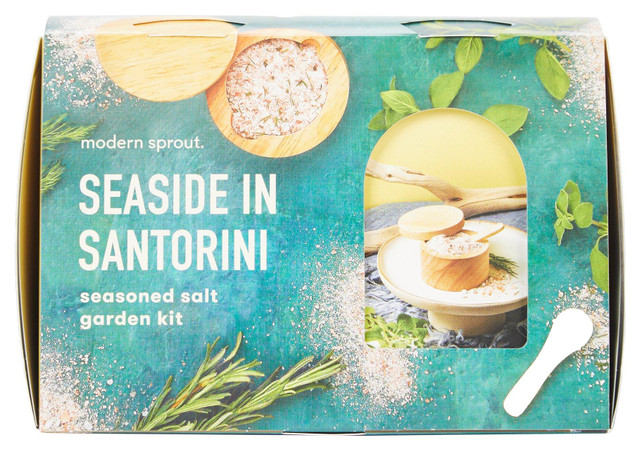 Cultivate fresh flavor with the Seasoned Salt Garden Grow Kit Seaside in Santorini. Includes herb seeds for oregano, dill, and rosemary, along with a wood salt cellar, garden markers, and a grow guide. A sensory gift for kitchen gardeners and home cooks alike. Store in a cool dry place.