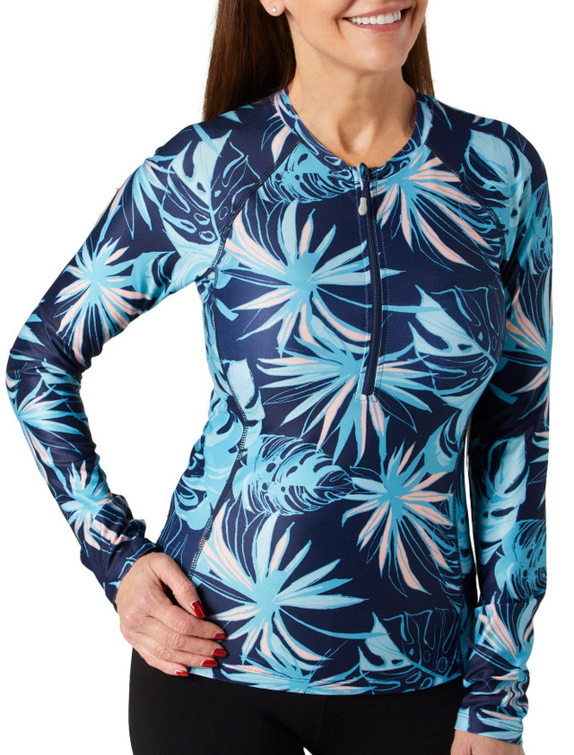 The Women's Active Printed 1/4 Zip Top combines style and performance with a comfortable, stretchy fit. Made from 92% polyester and 8% spandex, it offers breathability and flexibility for active days. The long sleeves provide coverage, while the 1/4 zip allows for adjustable ventilation. The vibrant print adds a stylish touch, making this top perfect for workouts, casual wear, or outdoor activities.