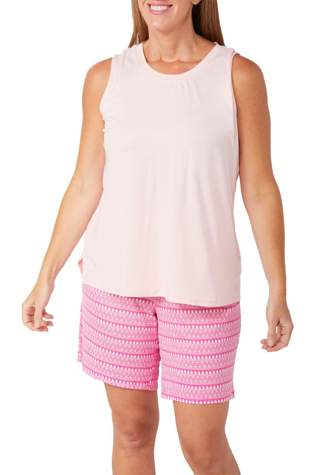 Introducing the Women's 2-Piece Pajama Shorts Set, designed for ultimate comfort and style. Made from a blend of polyester and spandex, this set includes a solid tank top and striped pull-on shorts. The soft and stretchy fabric ensures a cozy fit, perfect for a restful night's sleep or lounging around the house. The combination of the solid top and striped shorts adds a touch of fun and flair to your sleepwear collection.