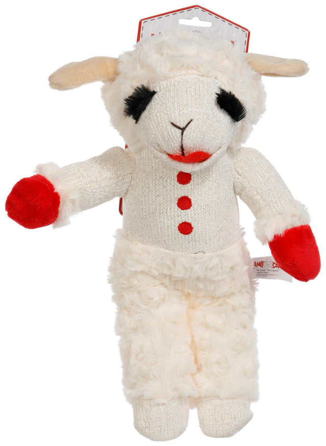 Soft, snuggly, and full of charm, our Lamb Chop Dog Toy is perfect for pups who love a gentle companion with a playful twist. With a built-in squeaker and plush texture, its great for cuddles, light chewing, and fetch. Fabrication is 100% Polyester. Measures approximately 13 in x 10 in x 4 in.